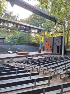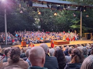 Spelers lopen inmiddels over het toneel. Technici kijken of alles werkt. Het wordt tijd dat het publiek op de tribunes kan plaatsnemen voor Hømlet.